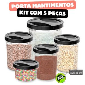 Kit 5 Peças para Mantimentos com Tampa de Rosca – 6L-3L-2L-1L-500ml
