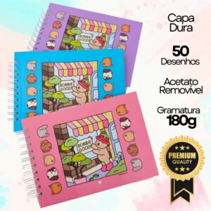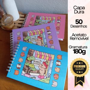 Livro de Colorir Temático Estilo Bobbie Goods – Capa Dura | Papel 180g | 50 Folhas | 16x22cm | Acetato Destacável