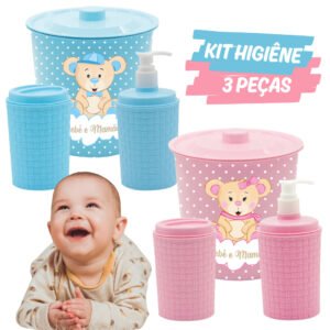 Kit Higiene 3 Peças Bebê com Lixeira – Praticidade, Organização e Cuidado no Dia a Dia!