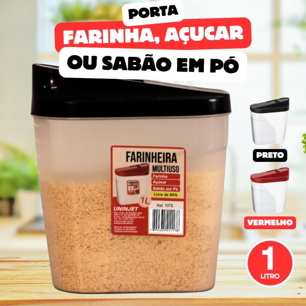O Recipiente Multiuso Uninjet é a solução perfeita para organizar e armazenar diversos tipos de ingredientes. Seja como farinheiro, açucareiro, ou até como porta sabão em pó, ele se adapta facilmente às suas necessidades, trazendo praticidade e funcionalidade para a sua casa ou negócio.
